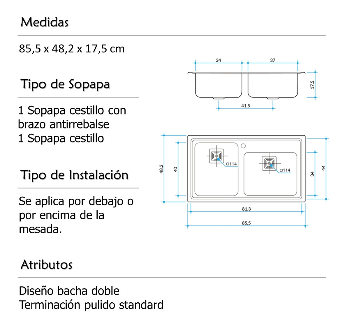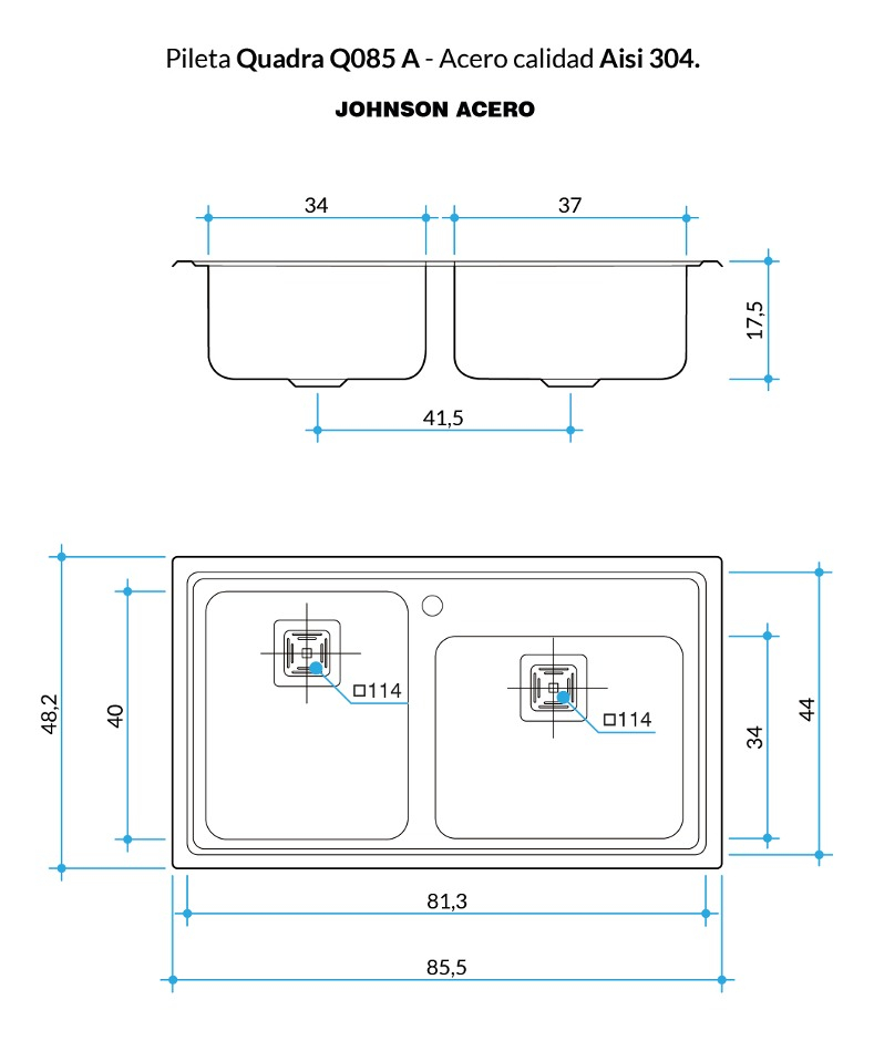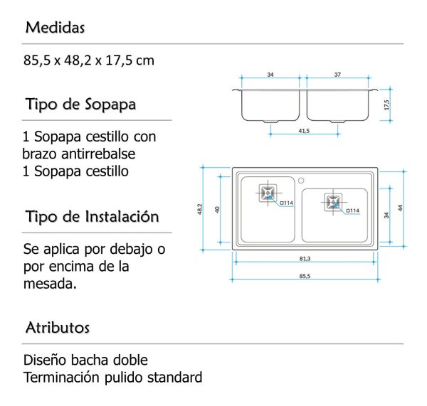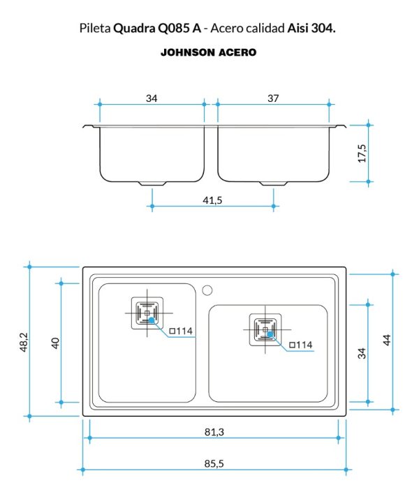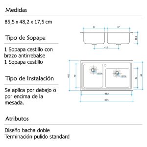 Bacha Cocina Doble Johnson Encastrar Q085 A: