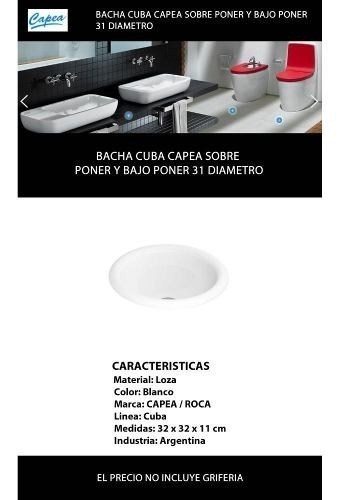 BACHA CUBA CAPEA SOBRE PONER Y BAJO PONER 31 DIAMETRO
