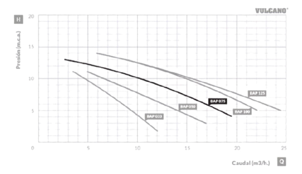 Bomba autocebante para piscina BAP 075 Vulcano. Ofrece un óptimo rendimiento para responder a las exigencias del uso profesional. Es utilizada para la recirculación de caudales de agua principalmente en piscinas medianas.
