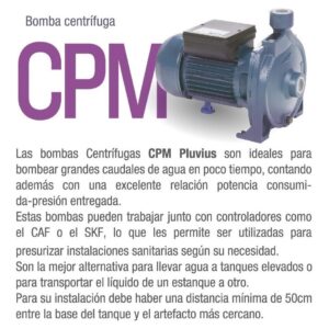 Las bombas centrífugas CPM Pluvius son ideales para bombear grande caudales de agua en poco tiempo de funcionamiento.