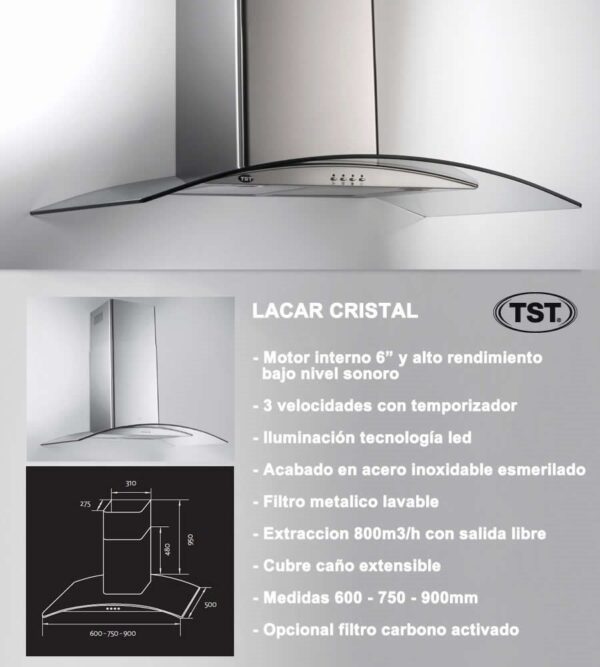 Campana De Cocina Acero Inoxidable Tst Lacar 60 Cm