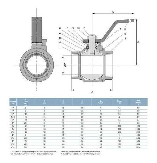 – Diametro Nominal 1/4” a 4” Bronce – 1/2” a 2” Acero Inoxidable