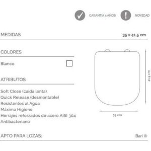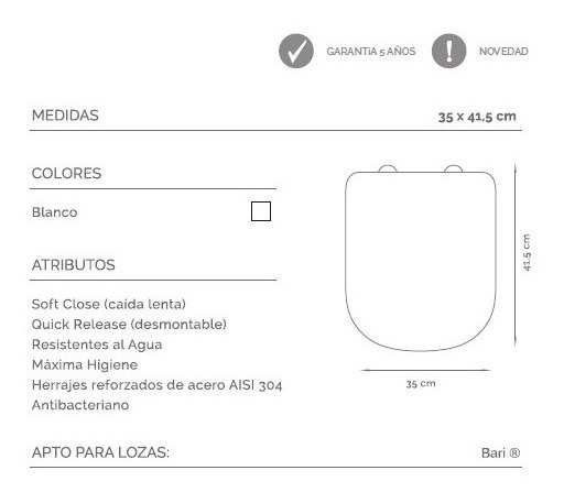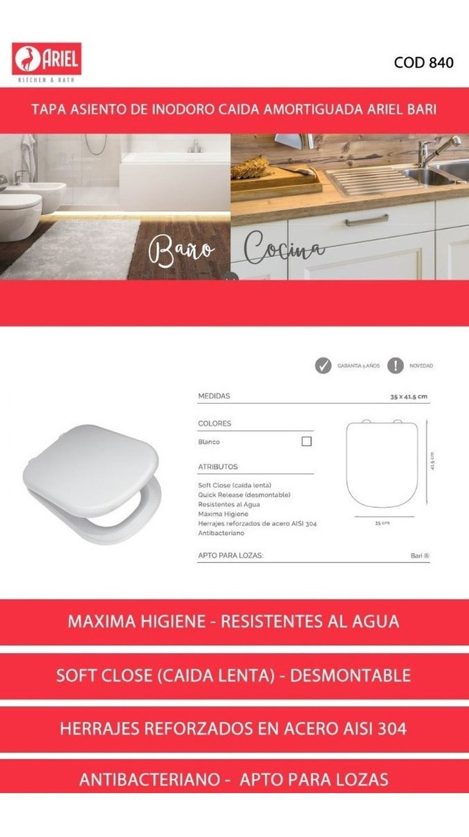 Tapa Asiento De Inodoro Caida Amortiguada Ariel Bari