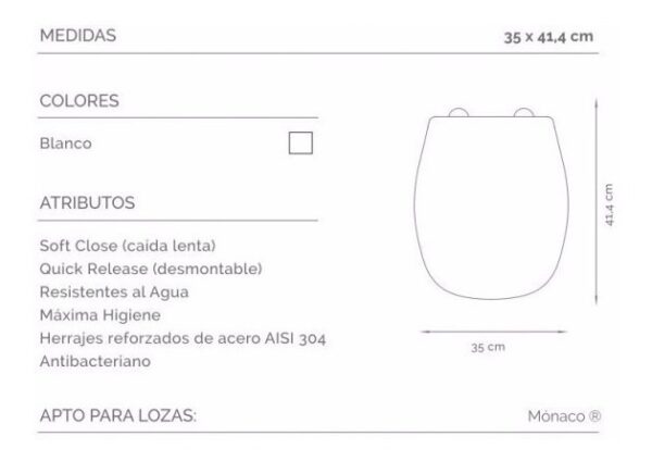 Tapa Asiento De Inodoro Caida Amortiguada Ariel Monaco